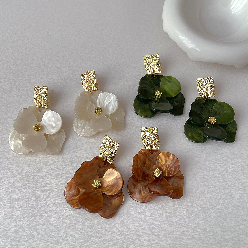 Ear Clip Simple Vintage Design Acrylic Flower Tassel Earrings s925 Silver Needle Exaggerated Ear Jewelry
