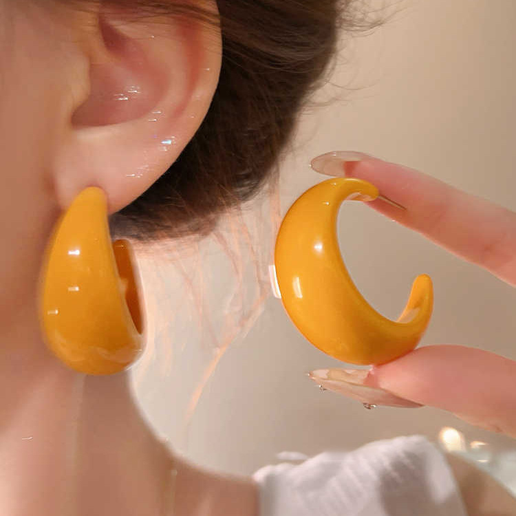Silver Needle Small Fresh Candy Color C-Shaped Geometric Earrings Fashionable Stylish Simple Niche Elegant High-End Earrings for Women