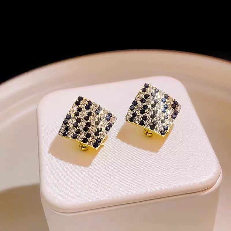 Square black and white diamond earrings women's silver needle light luxury high-grade 2023 new niche design earrings