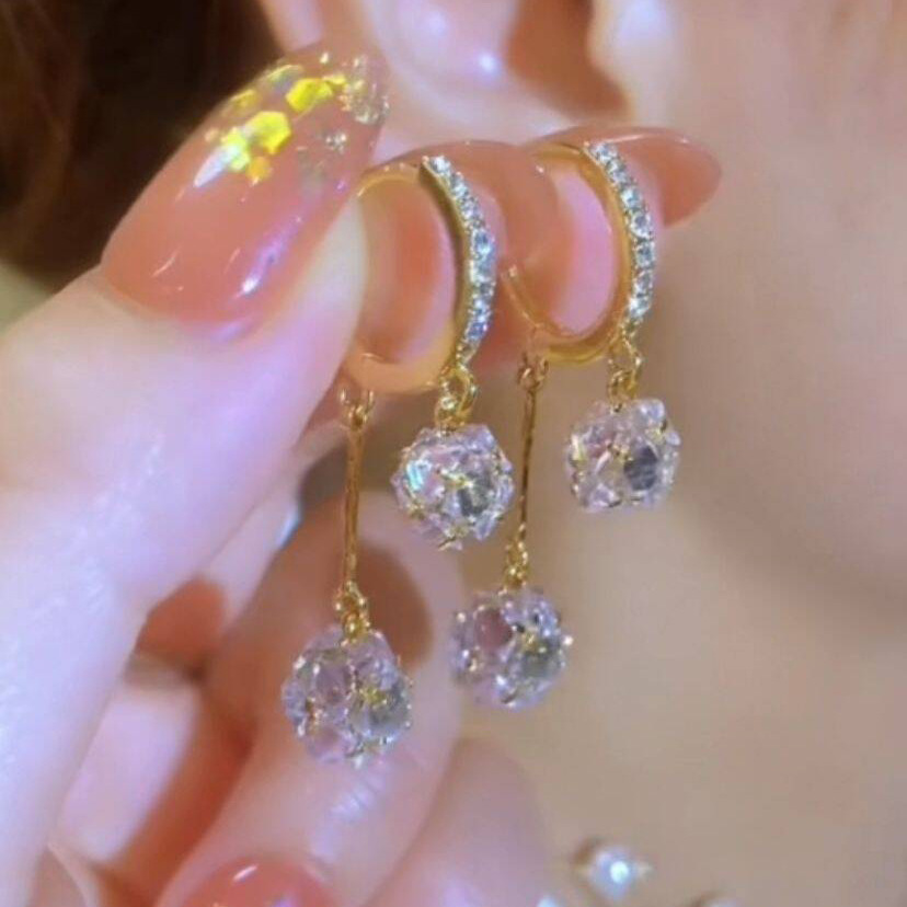 High-grade Zircon Pendant Earrings Women's South Korea Elegant All-match Sterling Silver Ear Buckle New Fashionable Simple Ear Jewelry