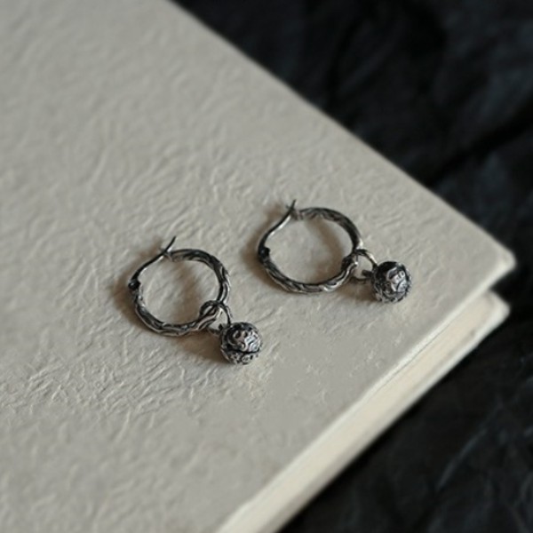 Vintage Small Bell Pestle Ear Buckle Women's Xizang Style Old Bell Earrings Men's Fashion Ethnic Style Imitation Thai Silver Earrings