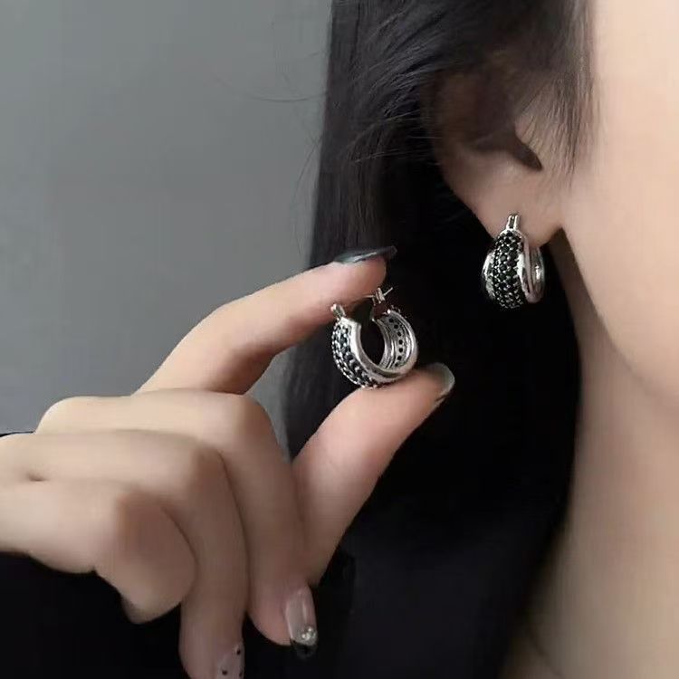 Light Luxury High-end Sense Black Silver Contrast Color Micro-inlaid Zircon Ear Buckle Fashion Design Sense Personality All-match Earrings Elegant Earrings