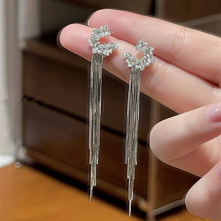 European and American Exaggerated Long Earrings Korean Style Temperament Full Diamond Earrings Rhinestone Tassel Night Shop Earrings Dress Banquet Ear Jewelry
