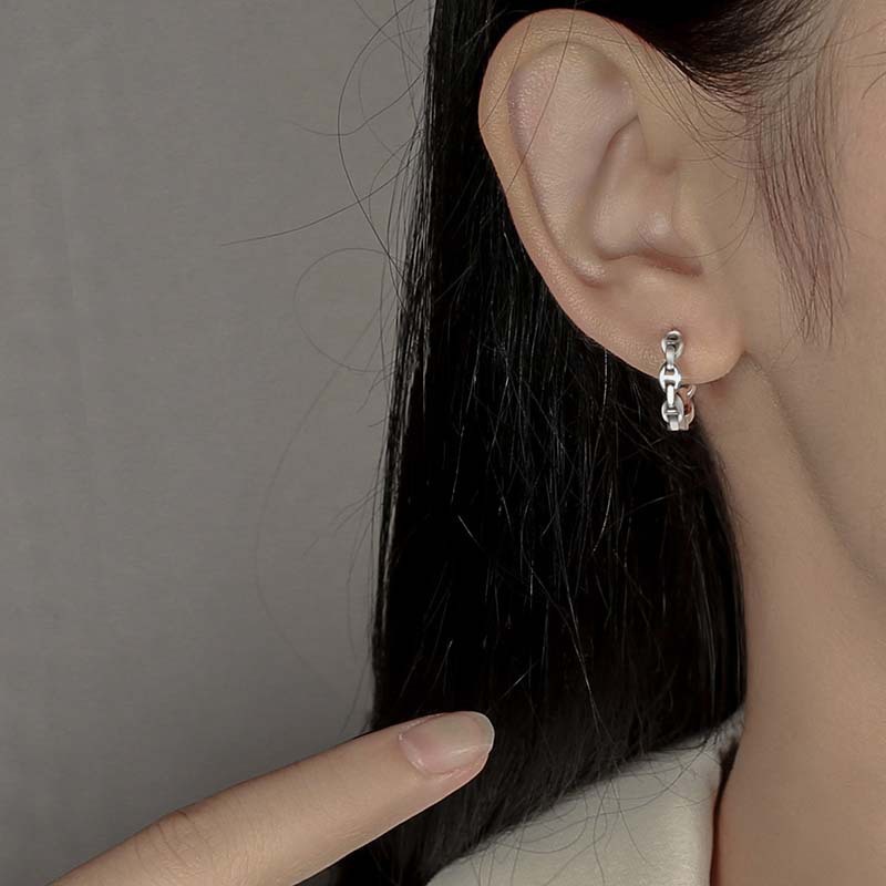 S925 Silver Needle Pig Nose Ear Ring Sleeping Free Pick Personality Design Cool Handsome Retro Geometric Ear Buckle New Fashion