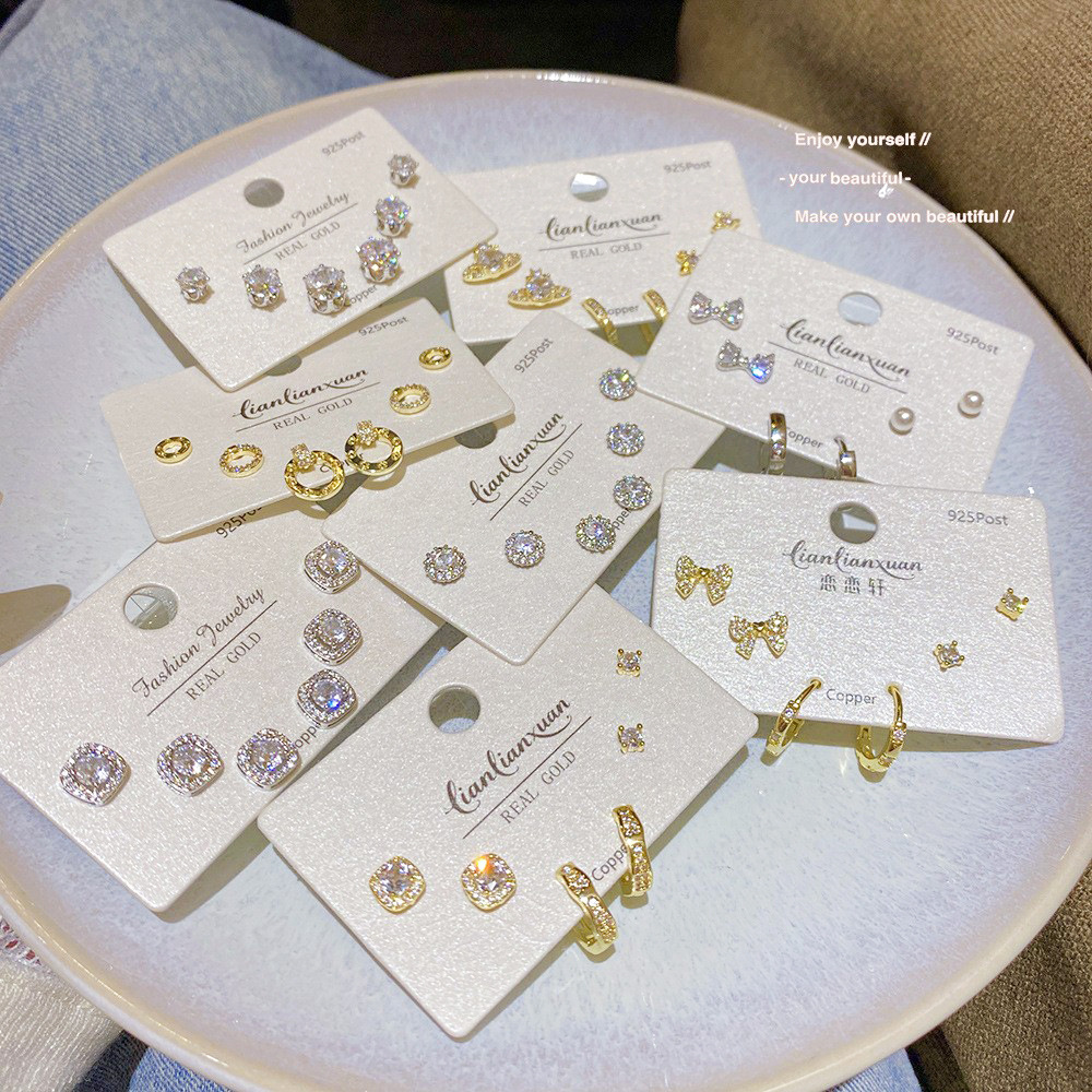 S925 Silver Needle Small Six-Piece Earring Set, Light Luxury High-End Earrings, Simple One-Card Niche Exquisite Versatile Earrings
