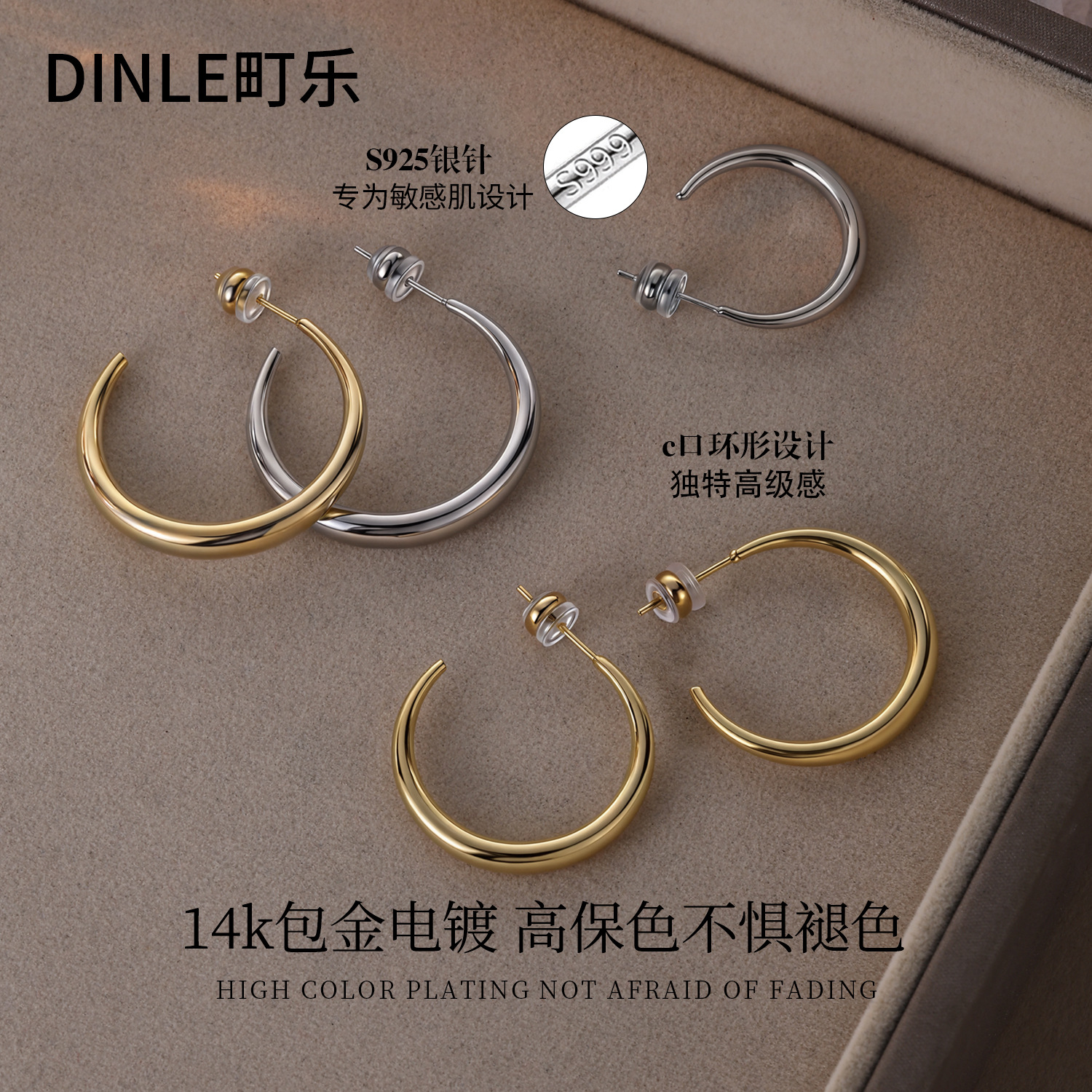 Silver Needle Retro Gold Silver High-End Exquisite Small Plain Hoop Large Earrings Hoop Women's Simple and Elegant Earrings