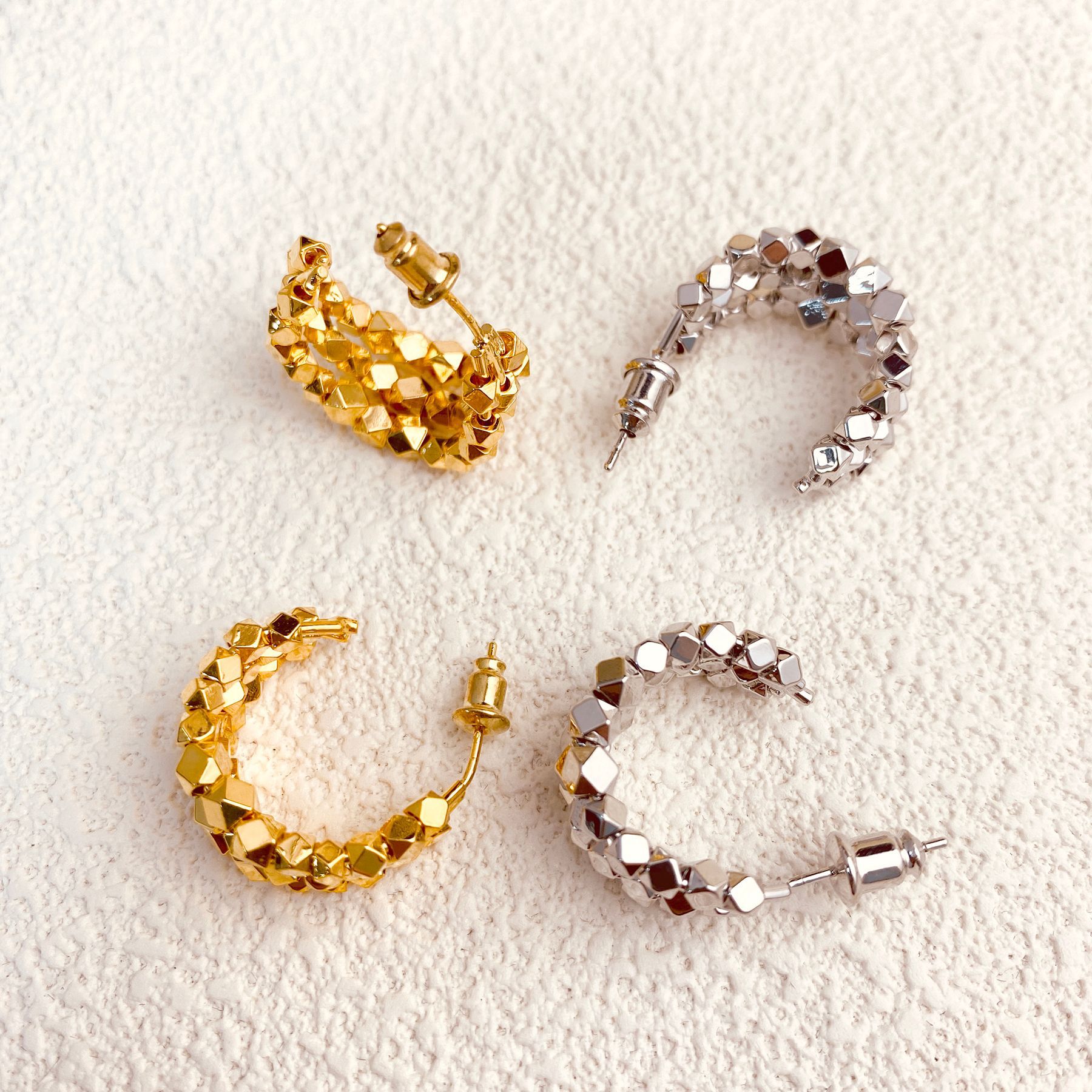 Silver needle earrings women's light luxury high-end feeling plain ring exaggerated big ear ring square face earrings design sense niche wholesale