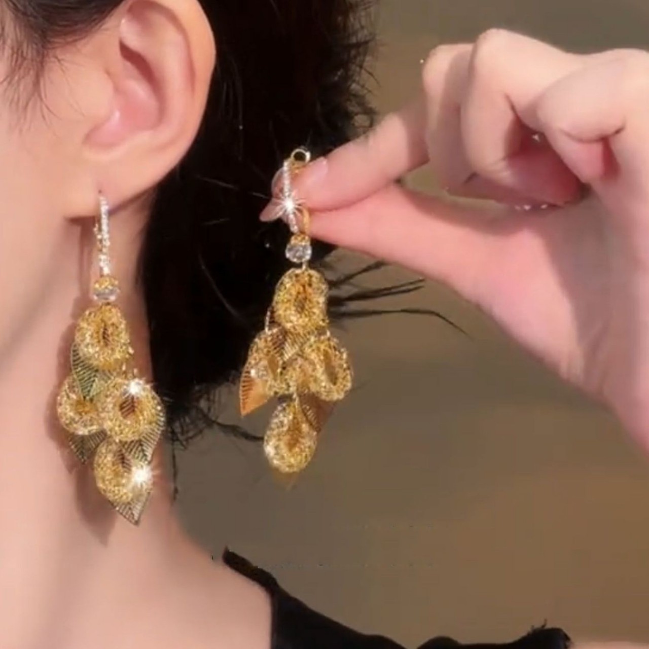 Retro European and American Style Twilight Echo Golden Tassel Zircon Earrings Women's Niche Design Luxury Long Leaf Earrings