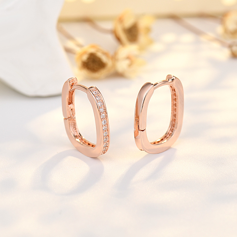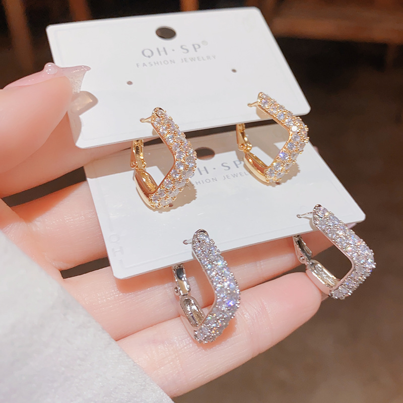 Qiao Lanxuan Foreign Trade European and American Personality ins Diamond Zircon Plated s925 Sterling Silver Ring U-shaped Ear Buckle Geometric Earrings for Women