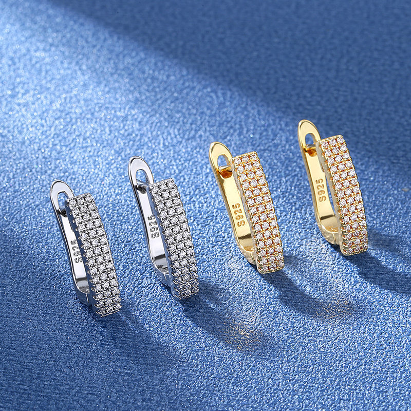 925 sterling silver diamond-embedded earrings female niche design Square ear buckle ins cold style ear jewelry temperament