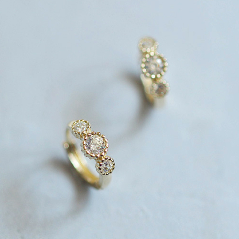 S925 Sterling Silver Plated 14K Gold CaKe Edge Three Diamond Earrings ins Small Fresh Elegant Mini Versatile Ear BucKle for Women