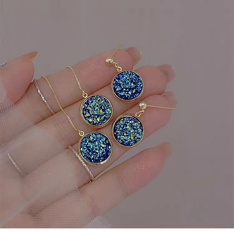 Blue Star Fragmented Diamond Round Earrings Colorful Smurfs Playful Ear Line Summer High-grade 925 Silver Needle Earrings