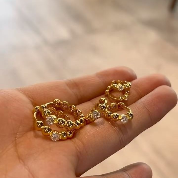 Sterling Silver S925 Bubble Diamond Big Ear Ring French Light Luxury Niche Simple Ins Style All-match Daily