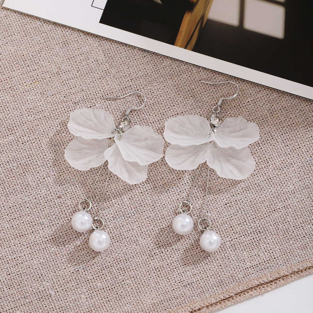 Silver Needle French Super Fairy Shell Petal Long Tassel Diamond Pearl Earrings Ins Style High-grade Sweet Earrings
