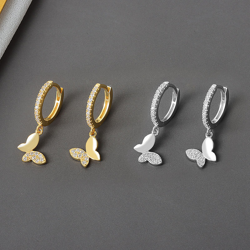 Japanese and Korean s925 Sterling Silver Wholesale Butterfly Ear Buckle ins Niche Design Simple Elegant Fairy Shell Internet Celebrity Earrings