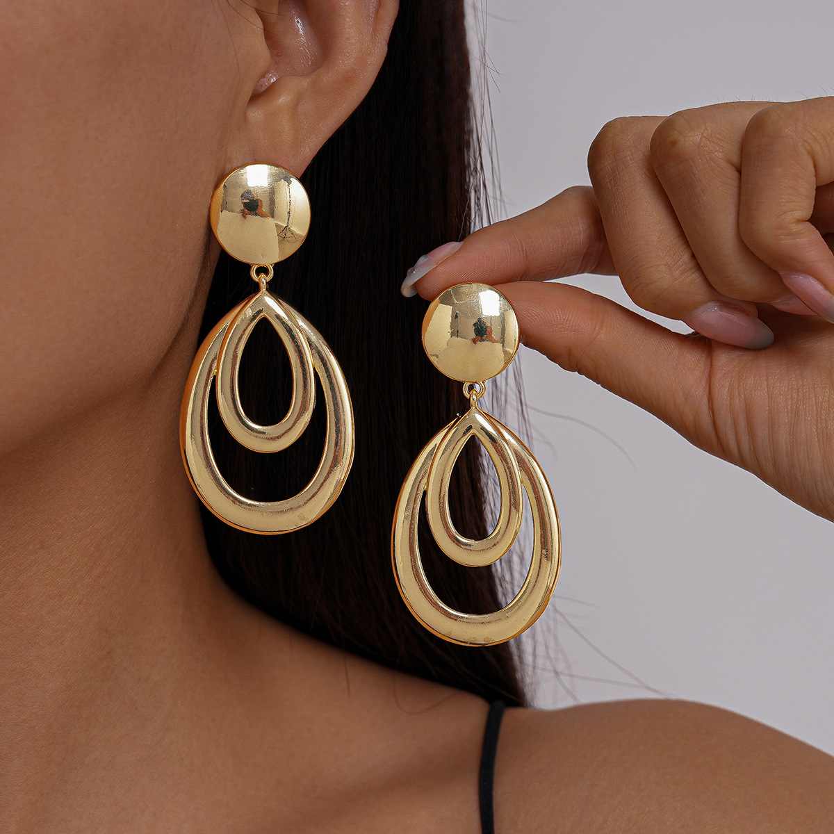 European and American Metallic Glossy Geometric Hollow Water Drop Silver Needle Earrings, Simple Cross-Border High-End Niche Style Earrings