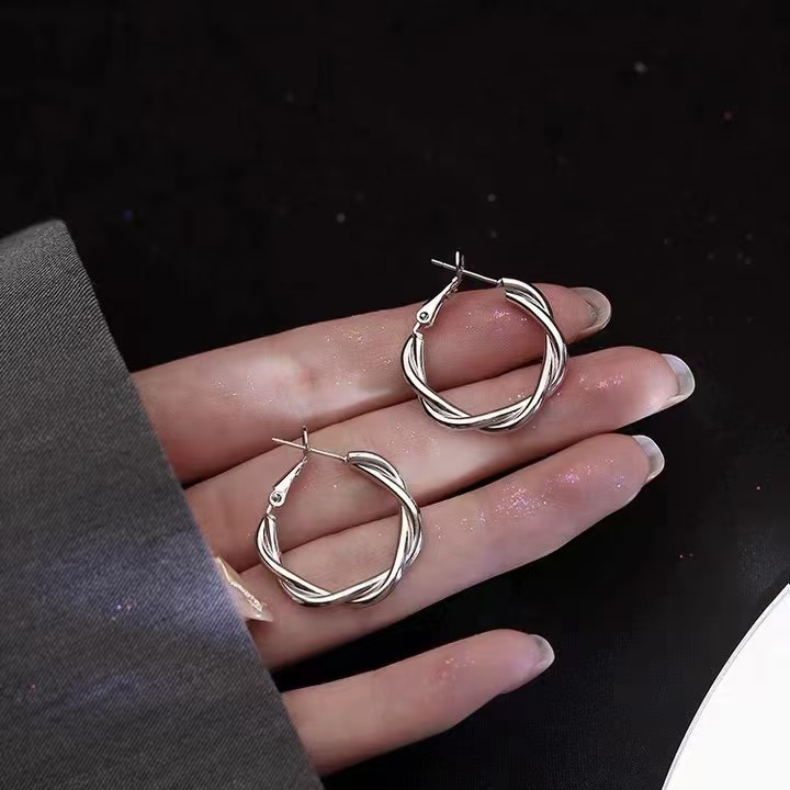 S925 Sterling Silver Twist Hoop Earrings New Factory Direct Supply Ins High-End Accessible Luxury Earrings Female Niche Design