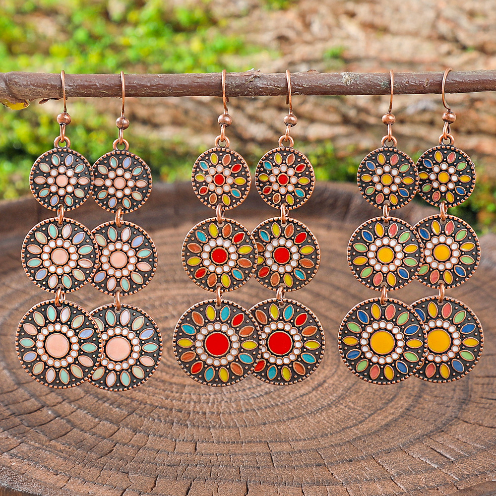 Cross-Border Popular Metal Style Colorful Oil Drop Earrings Original Design Ethnic Style Long Earrings Yunnan Vacation Earrings