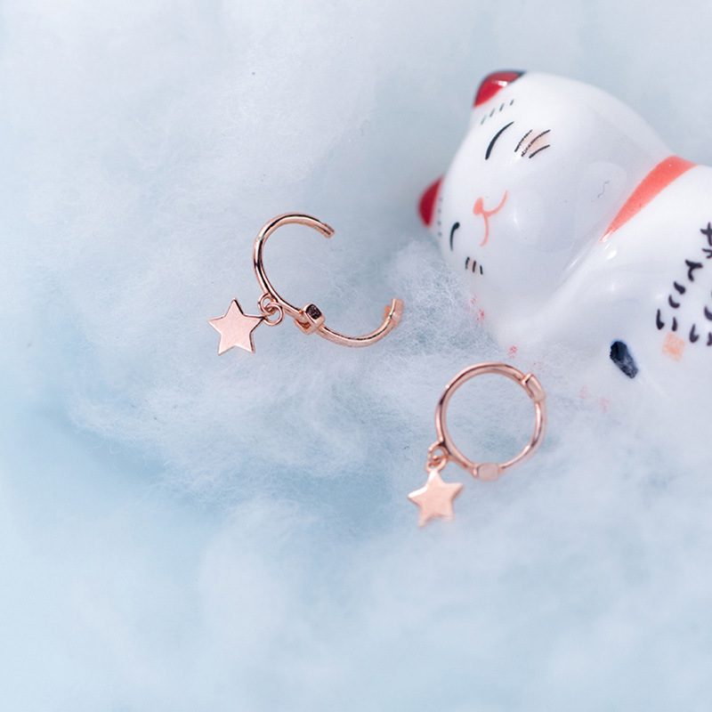 S925 Silver Ear Buckle Female K-Style Small Fresh Five-Pointed Star Sweet Short Earrings Elegant Star 2024 New Earrings