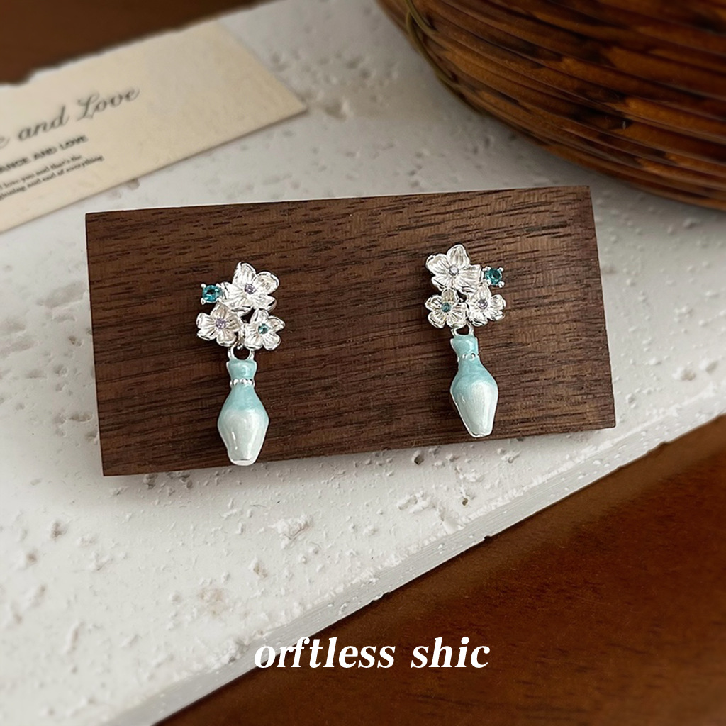 Original Elegant and Beautiful Personalized Vase 925 Silver Needle Enamel Drip Glaze Gradient Color Cool Earrings Factory Earrings