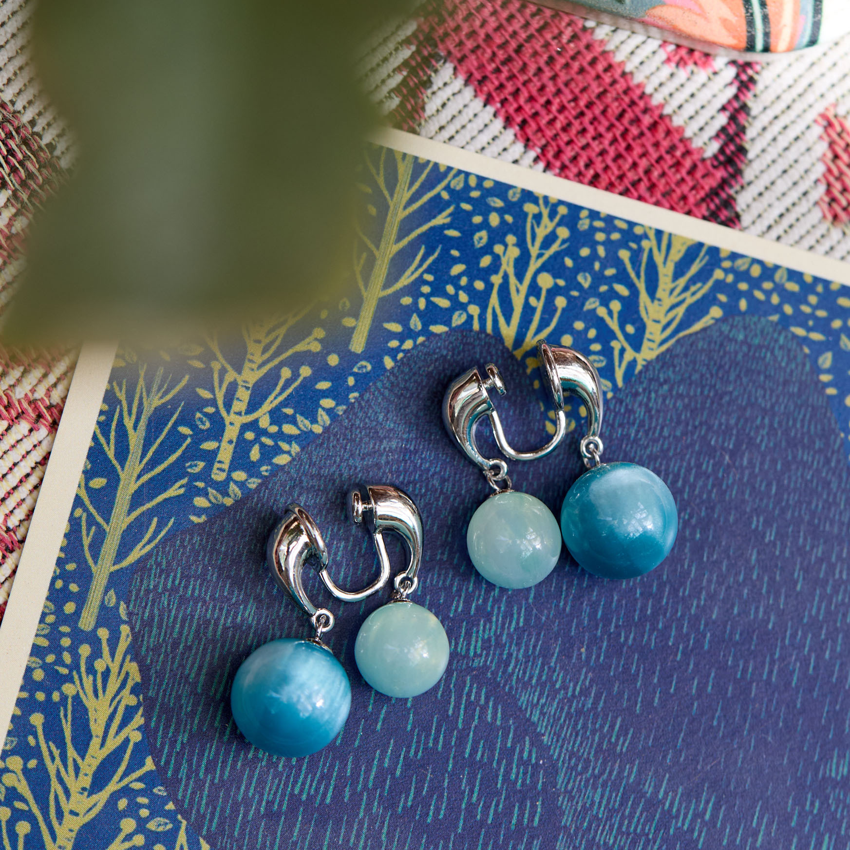 [Lime Soda] Blue and Green Contrasting Color Front and Rear Large and Small Ball Earrings, a Two-Wear Super Invisible Ear Clip