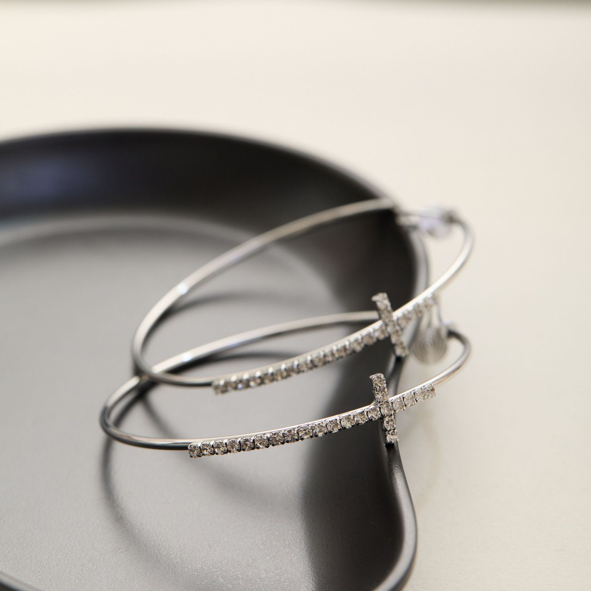 [Light of Faith] Exaggerated 7cm Cross Temperament Earrings Mosquito Repellent Disc Ear Clips for Women Without Pierced Earrings