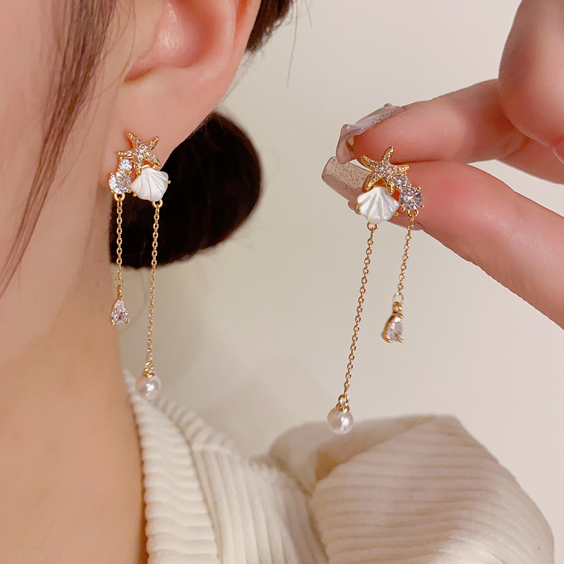 Spring New S925 Silver Needle Fashion Elegant Starfish Shell Zircon Tassel Earrings Small Fresh All-match Earrings for Women