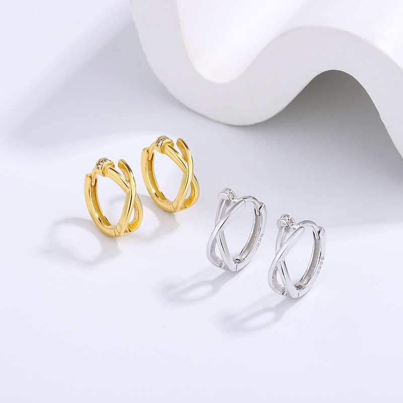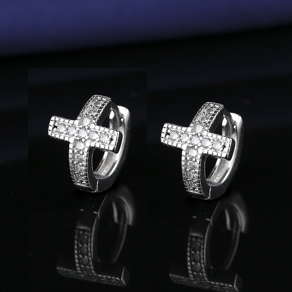 S925 sterling silver micro inlaid zircon cross ear buckle women's new design ear ring earrings niche fashion temperament ear jewelry
