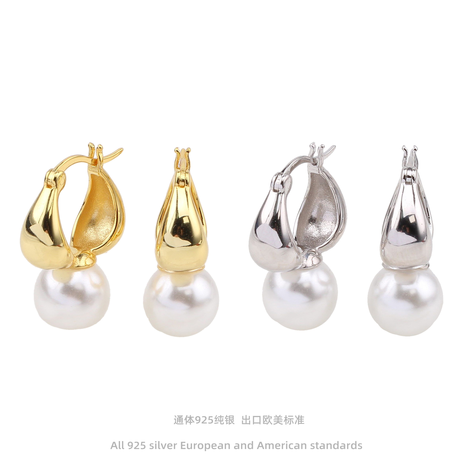 Cross-border Hot New S925 Sterling Silver French European and American Style Fashion Pearl Earrings Elegant Sweet Fresh Ear Buckle
