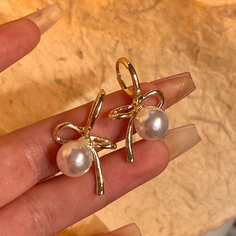 Ballet Girl Bow Pearl Ear Buckle Women's Light Luxury High-end Niche Design Earrings Elegant Gentle Ear Jewelry