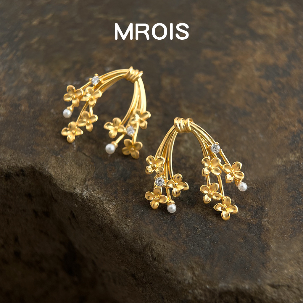 Osmanthus Falls ~ Original Thick-Plated 18K Real Gold Rope Knot Zircon Flower Earrings Accessible Luxury Elegant Niche High-End Earrings