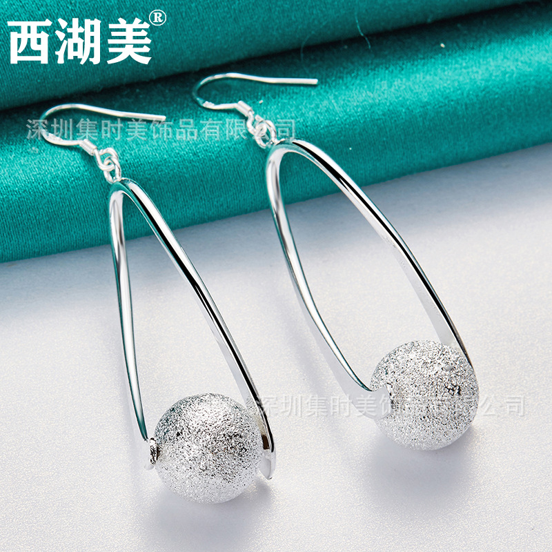 Silver Matte Matte Sand Bead Ball Hanging Earrings Earrings Women's Jewelry West Lake Beauty Jewelry