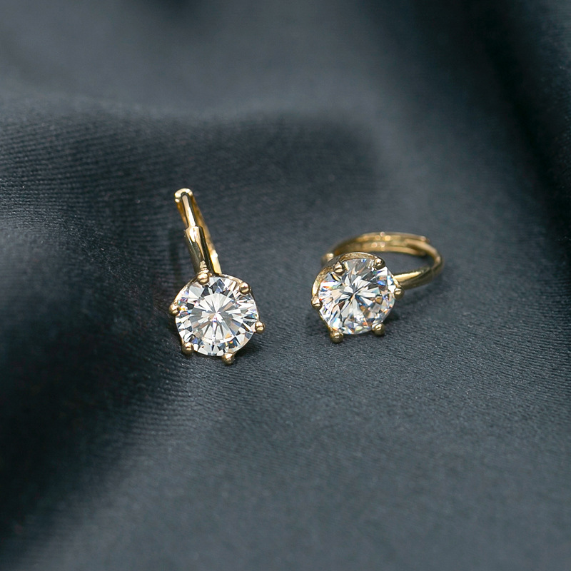 S925 Sterling Silver Plated 14K Gold Six Claw Bright Diamond Inlaid Ear Buckle Japanese and Korean Fashionable Women's Classic Earrings Fashion Earrings