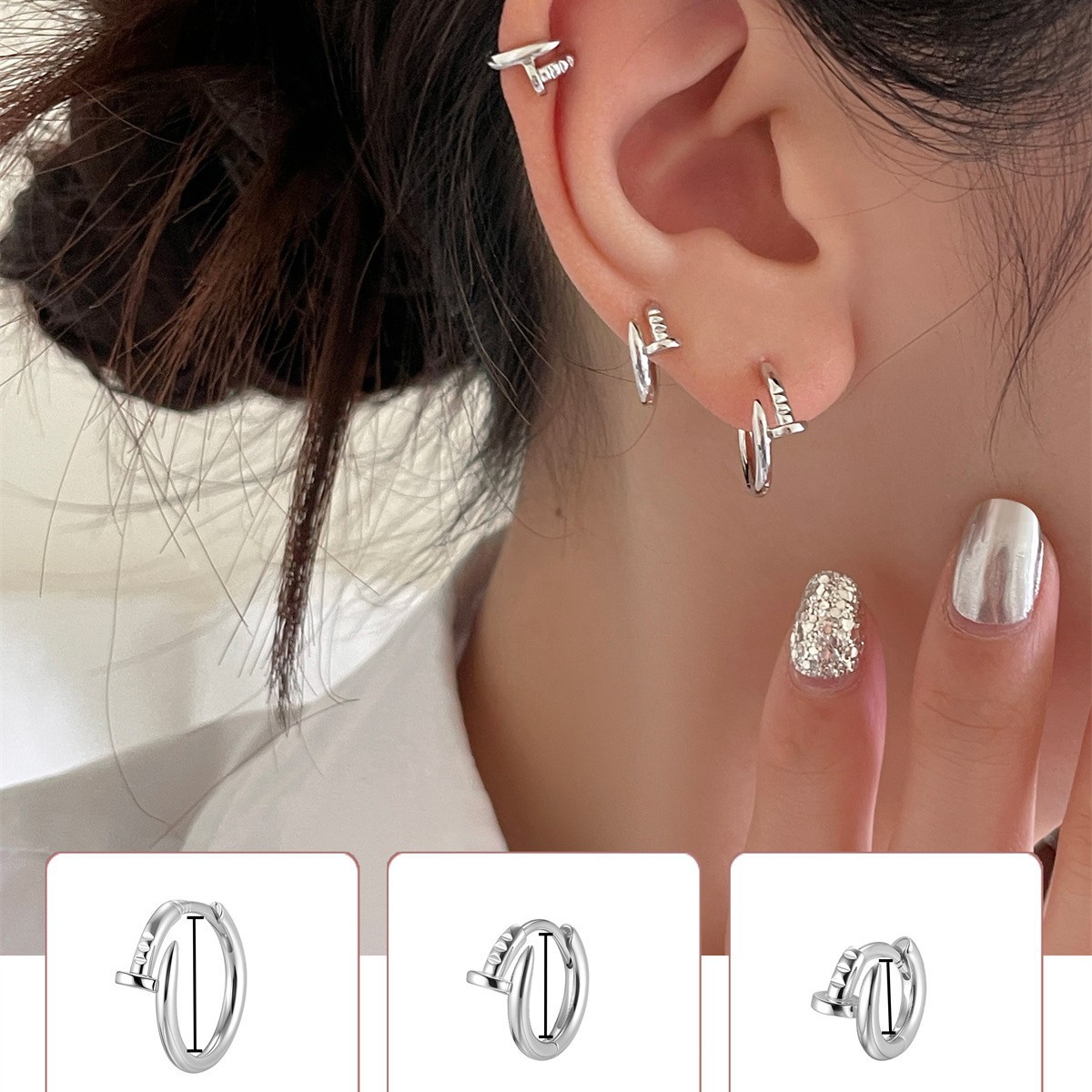 Celebrity-Inspired Stud Earrings for Men and Women, Niche Design with a Trendy and Sophisticated Feel, Silver Needle Hoop Earrings, Versatile Street Style Accessories
