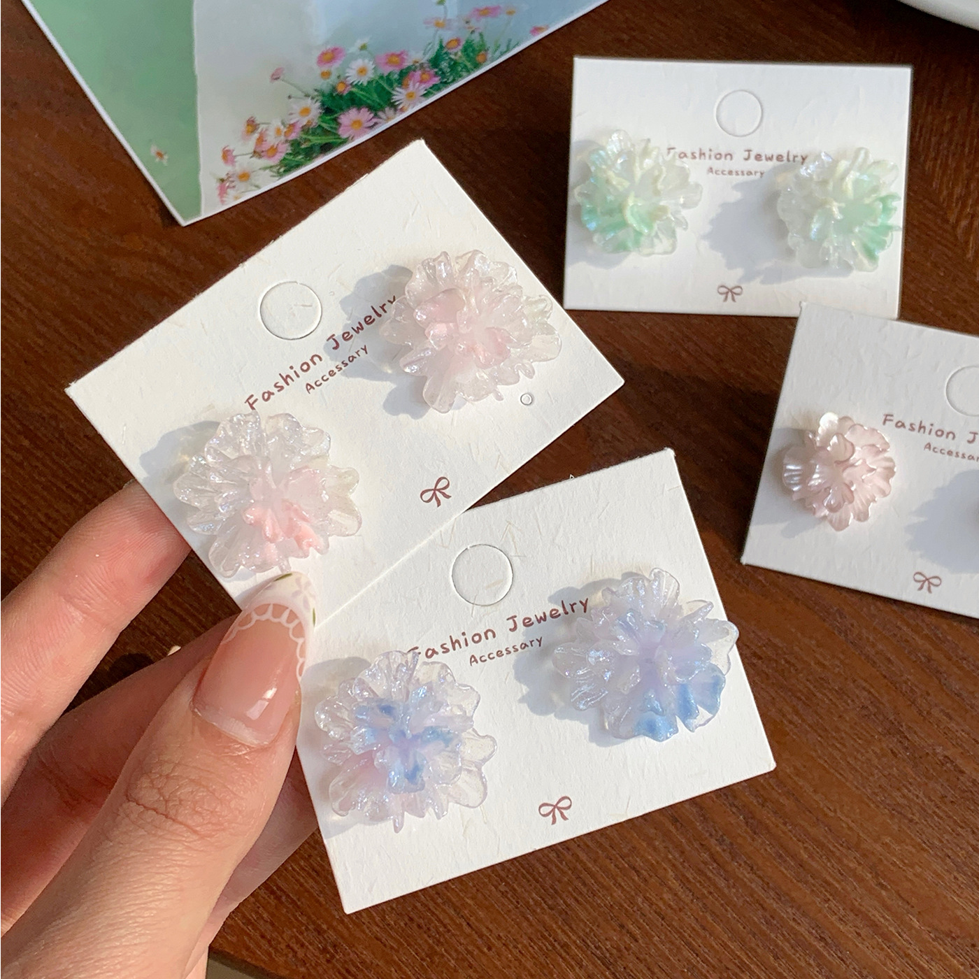 Summer New Style Resin Clear Smudged Flower Beaded Earrings for Women Silver Needle Super Fairy Sweet Forest Holiday Style Earrings