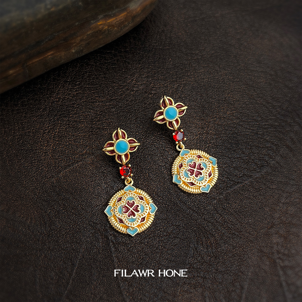 Original Design Chinese Style Ethnic 925 Silver Needle Enamel Drip Glaze Painted Artistic Retro High-End Earrings
