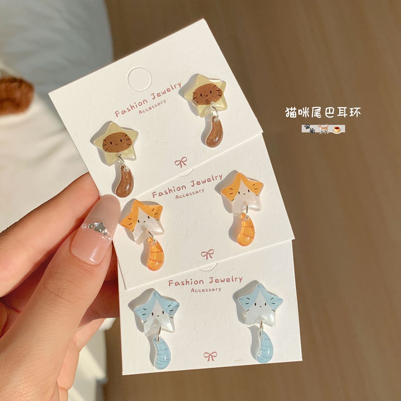 Autumn and Winter Resin Star Cat Tail Earrings for Women, Silver Needle, Cartoon Cute Design, Three-Dimensional Student Earrings