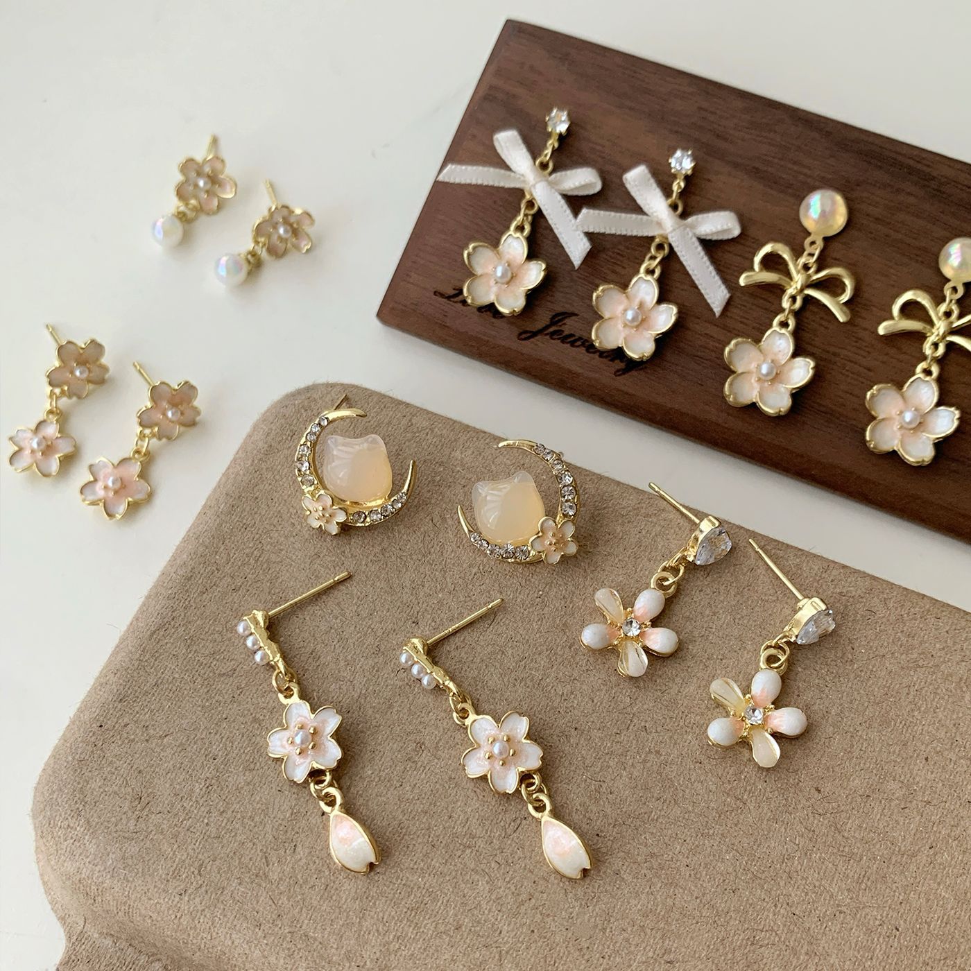 Pink Cherry Blossom Series Earrings for Women, Silver Needles, Springy, Sweet, Floral, Niche, High-End, Versatile Earrings