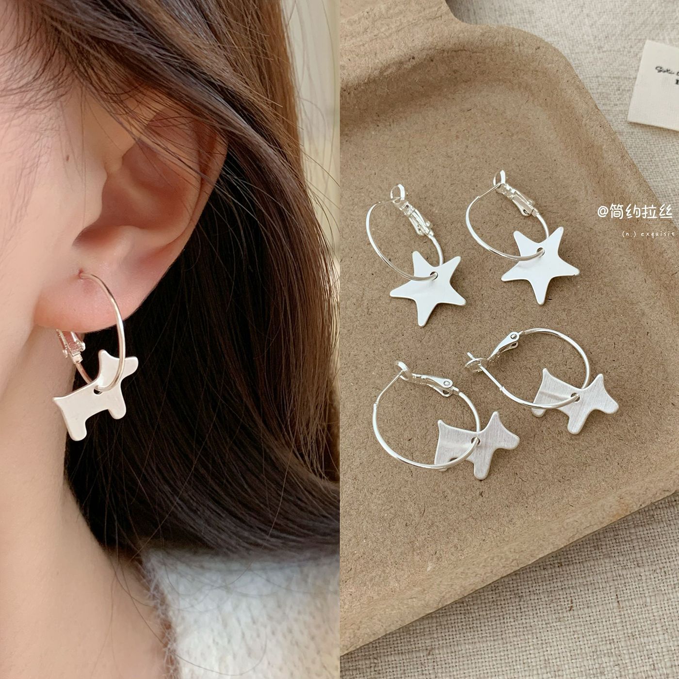 Sweet Plain Silver Brushed Five-Pointed Star Trojan Horse Earrings for Women with Silver Needles, Simple and Personalized, High-End, Stereo and Versatile Earrings
