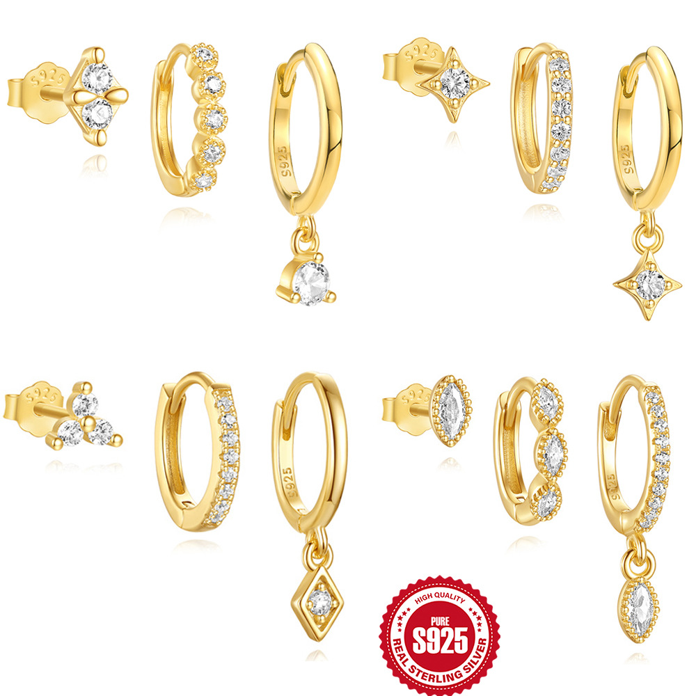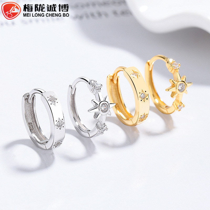 Stars like a dream ~ S925 silver plated 18K gold zircon earring female gift ear buckle light luxury niche earrings