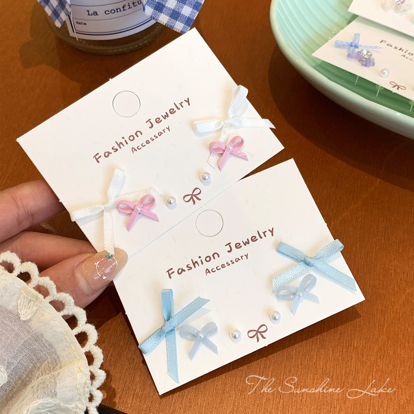 Spring Holiday Style Fabric Bow Earrings Niche Design Female Sweet Fresh Student All-match Earrings suit