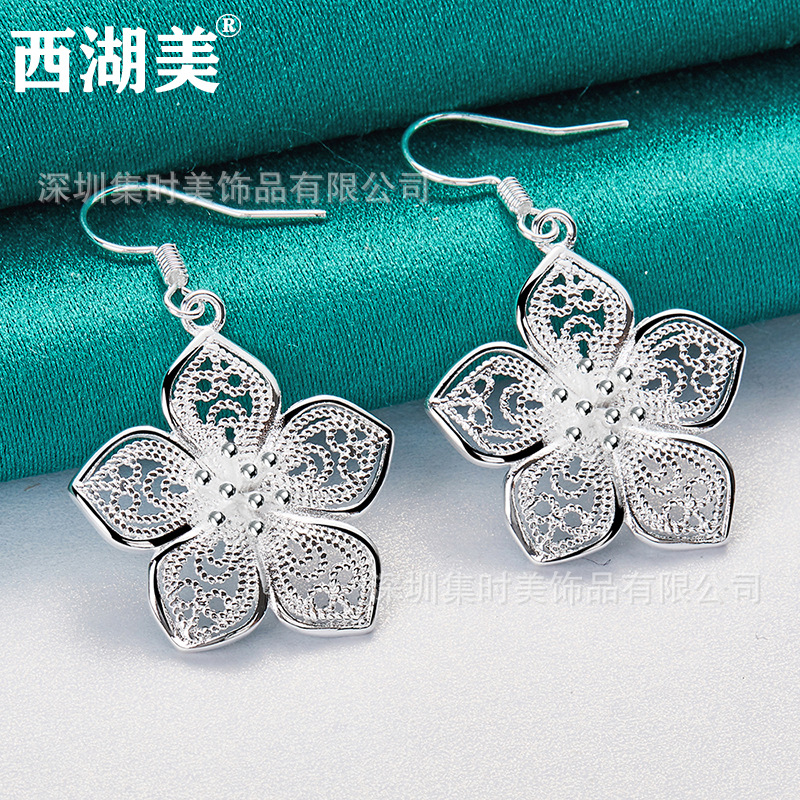 Silver Flower Hollow Earrings Popular Women's Jewelry Earrings Jewelry West Lake Beauty