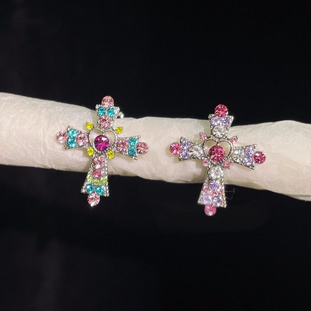 Light Luxury Unique Colorful Cross Earrings Super Shiny Personality Ear Cuffs Niche Design Hoop Earrings