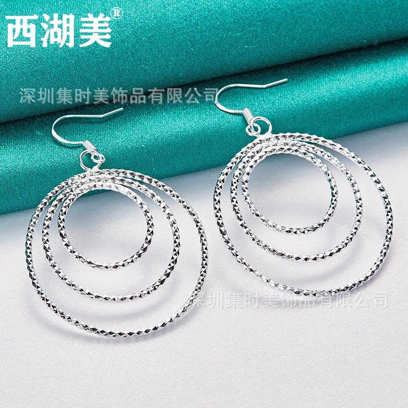 Silver Minimalist Three-ring Earrings Women's Jewelry Earrings Popular Jewelry West Lake Beauty