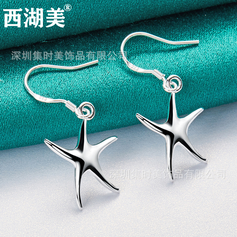 West Lake Beauty Silver Jewelry Solid Starfish Star Earrings Women's Jewelry Earrings Jewelry