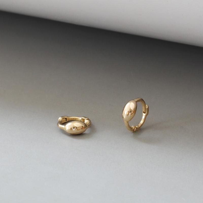 Casual~S925 Sterling Silver Plated 18Kk Gold Earrings for Women Mini Plain Oval French Water Drop Ear Bone Buckle Earrings