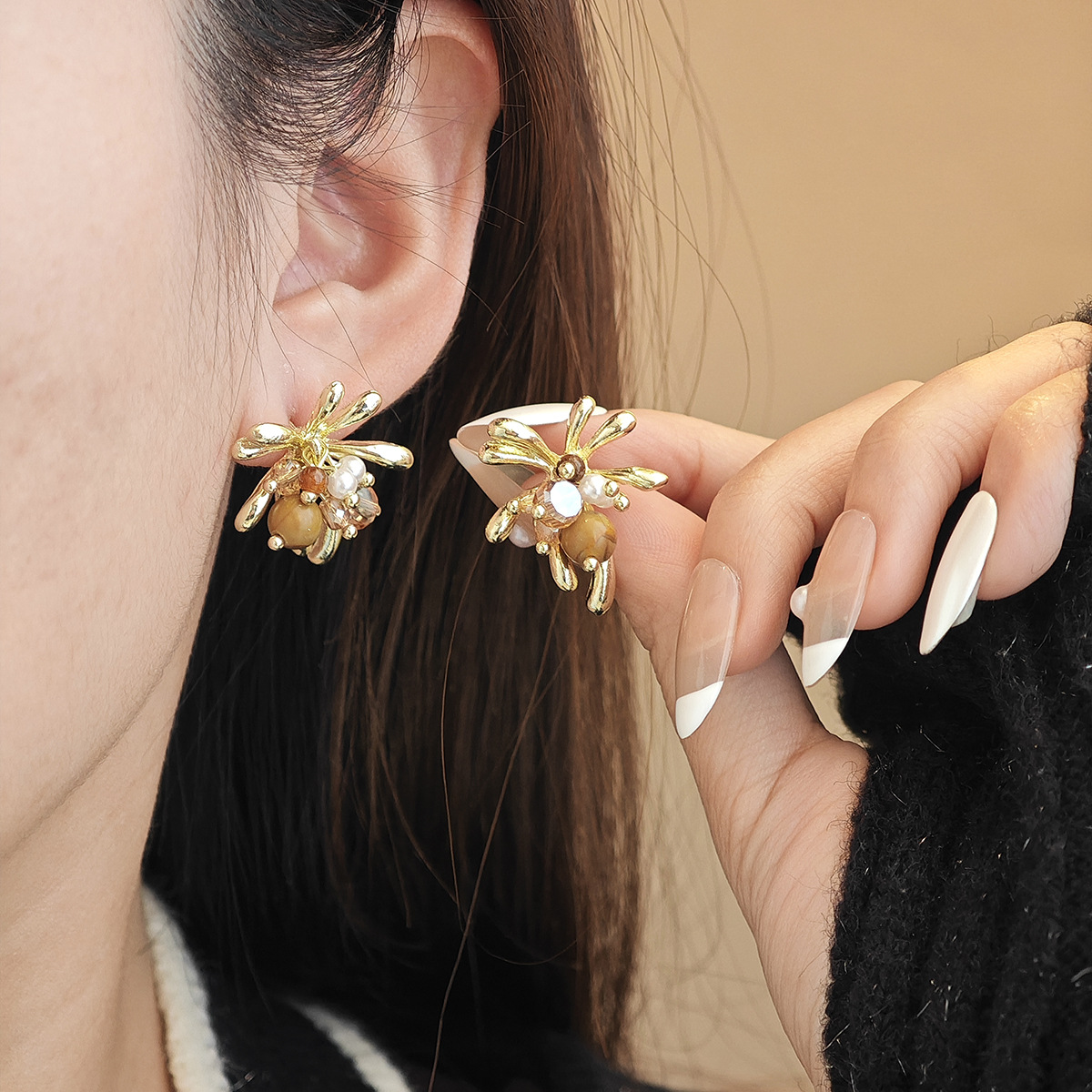 Silver Needle Autumn and Winter French Coffee Color Melard Earrings Ins Style Versatile Artistic Retro Fashion Stud Earrings for Women