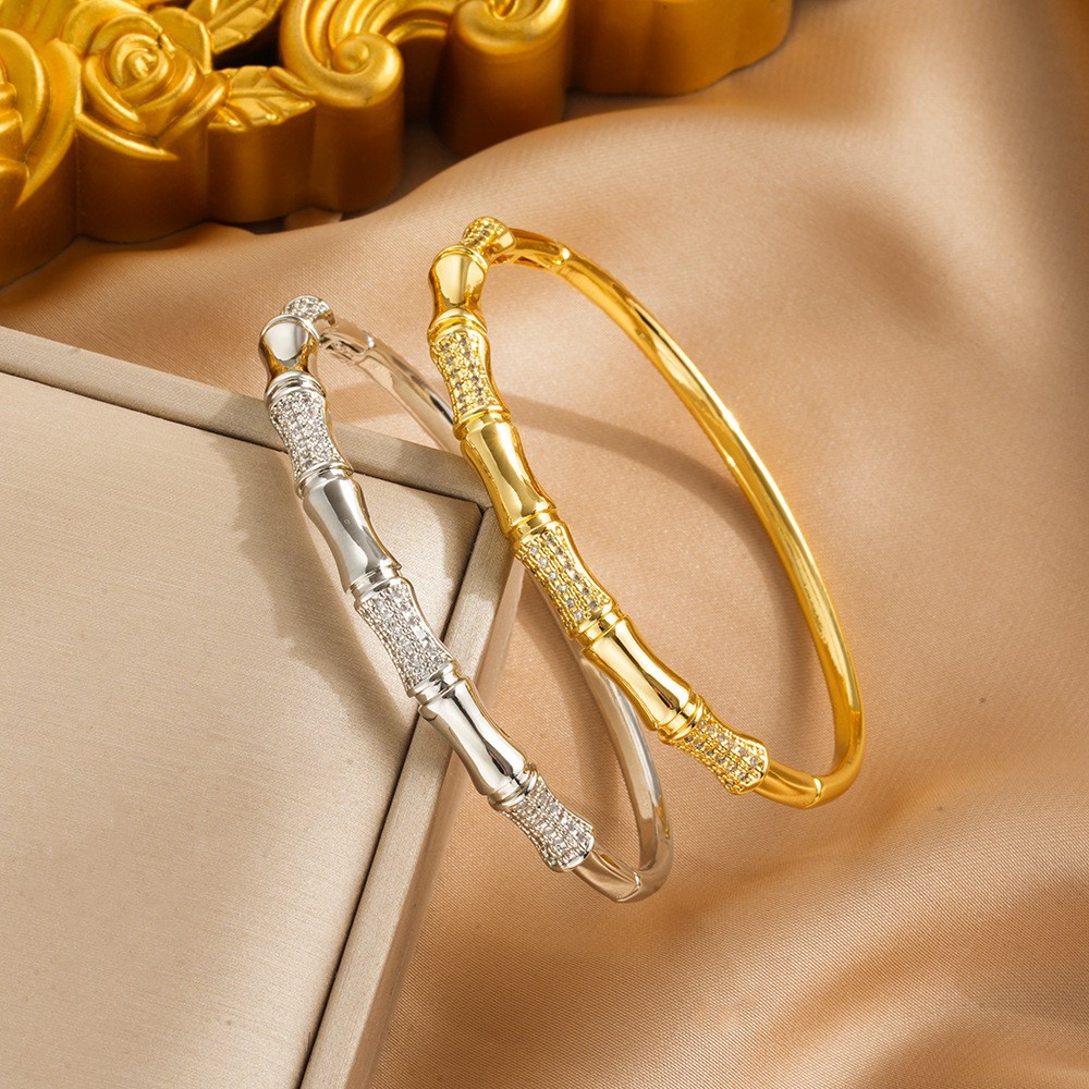 Cross-Border European and American Middle Eastern Fashion Micro-Embellished Bamboo Open Bracelet for Women, Light Luxury Temperament, Fashionable Real Gold Electroplating Wholesale