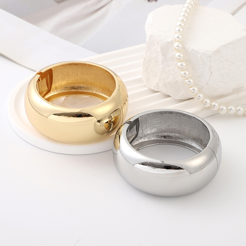 European and American Explosions High-end Sense Bracelet Women's Golden Electroplated Drum-shaped Simple Bracelet Light Luxury Fashion Cross-border New Trendy