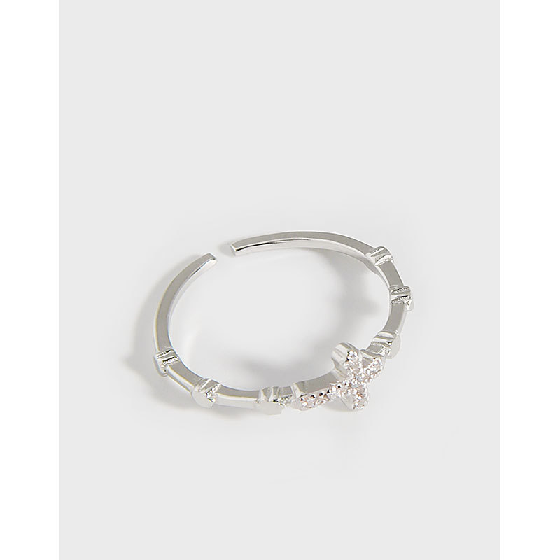 Thai Silver Sky Cross Star Inlaid with Blue Zirconium Open Ring Starry Sky Ring Star Ring Men's Meteorite Tail Ring